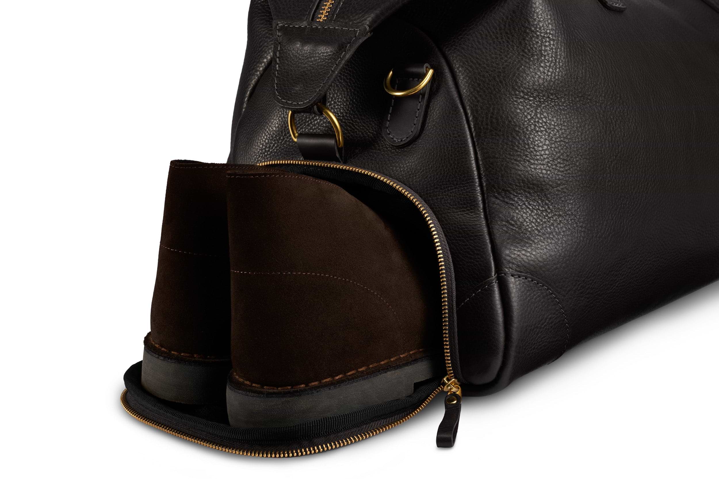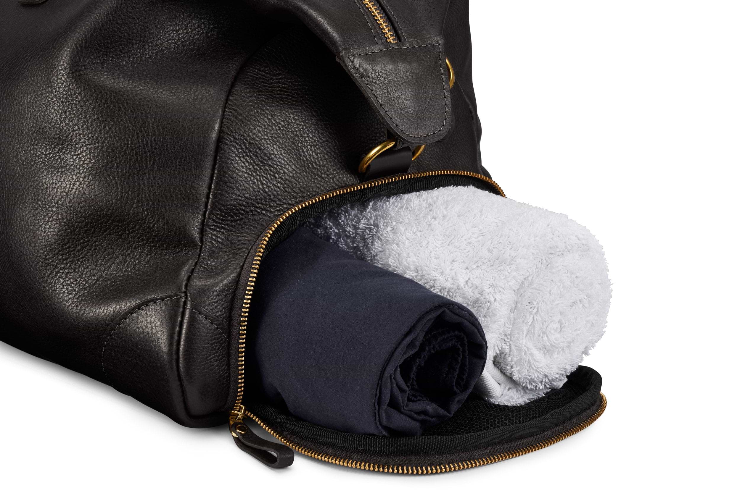 Every detail of this bag reflects Bennett Winch’s commitment to craftsmanship. The spacious main compartment is complemented by dual waterproof shoe sections, keeping footwear separate and clean. Inside, you’ll find a secure laptop sleeve, internal zip pockets, and a dedicated tech compartment for effortless organization. Finished with solid brass hardware, a detachable military-grade cotton shoulder strap, and full-grain leather handles, this bag is built to last and age beautifully—developing a unique patina over time.
