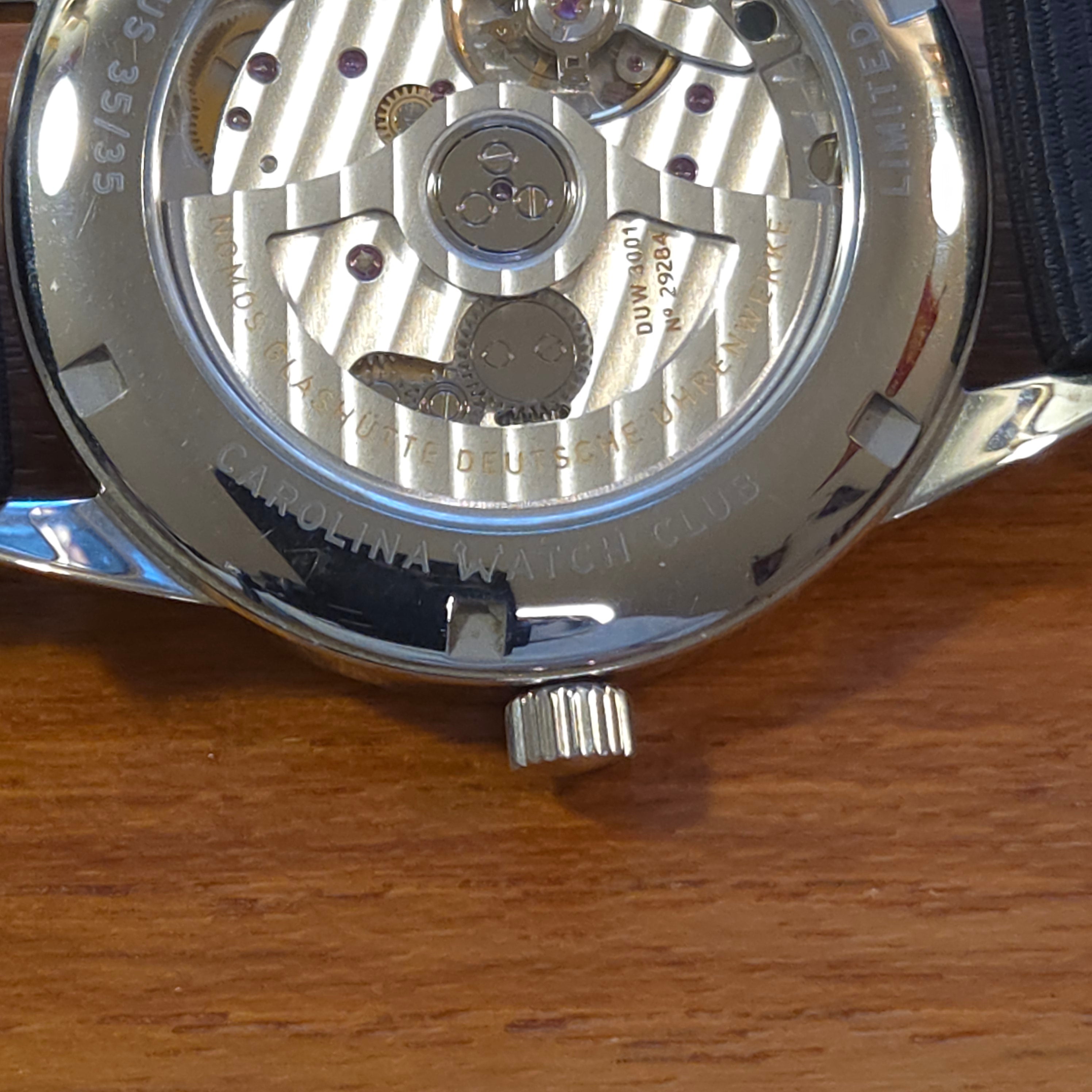 - Caseback: Sapphire display with Carolina Watch Club engraving