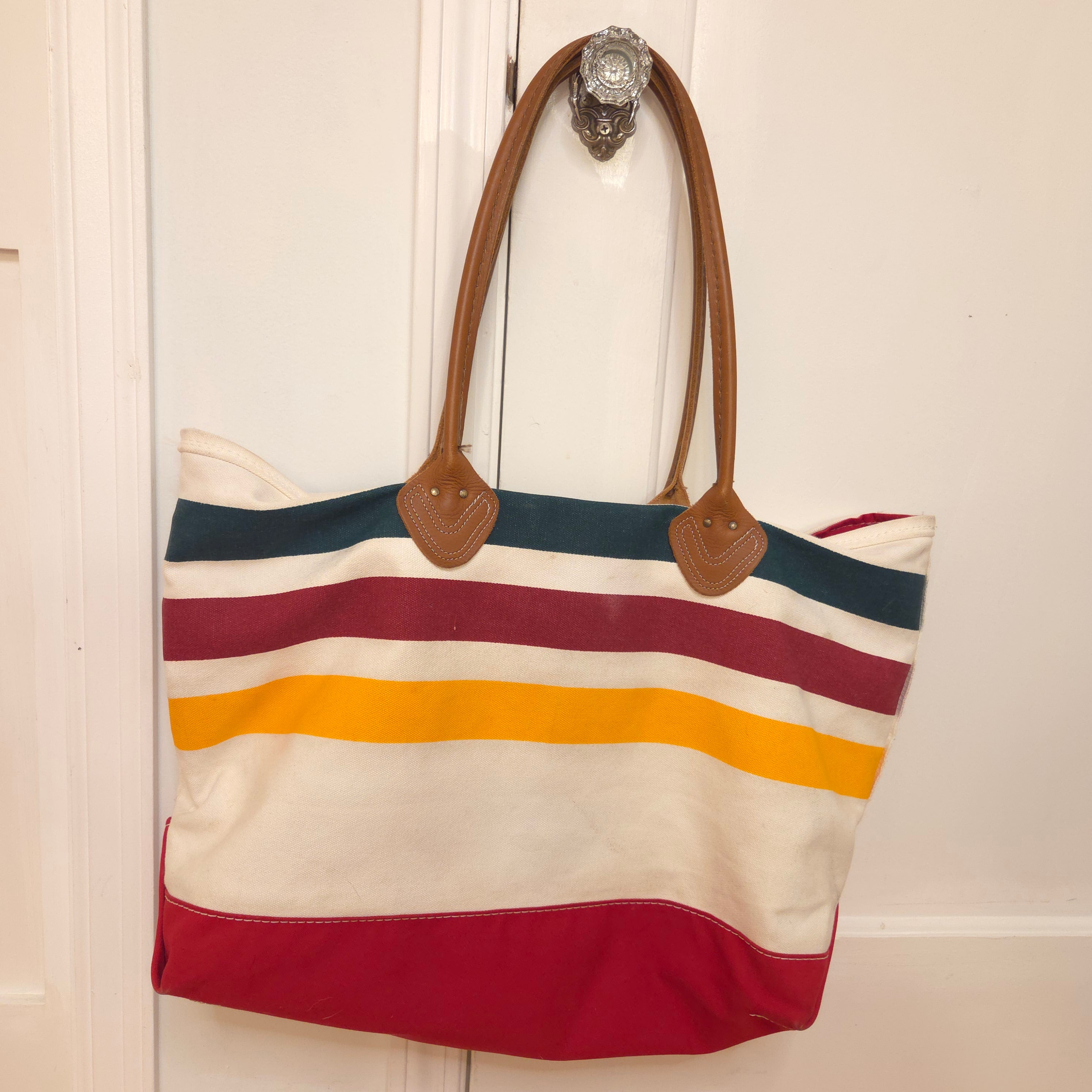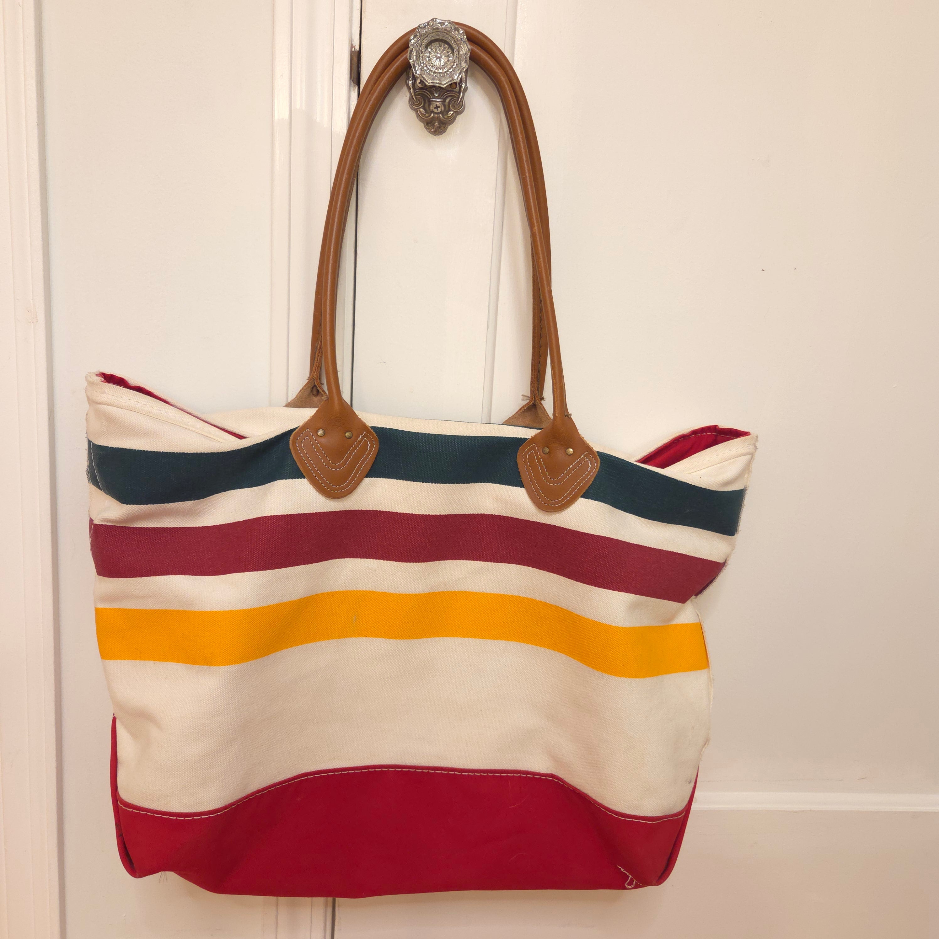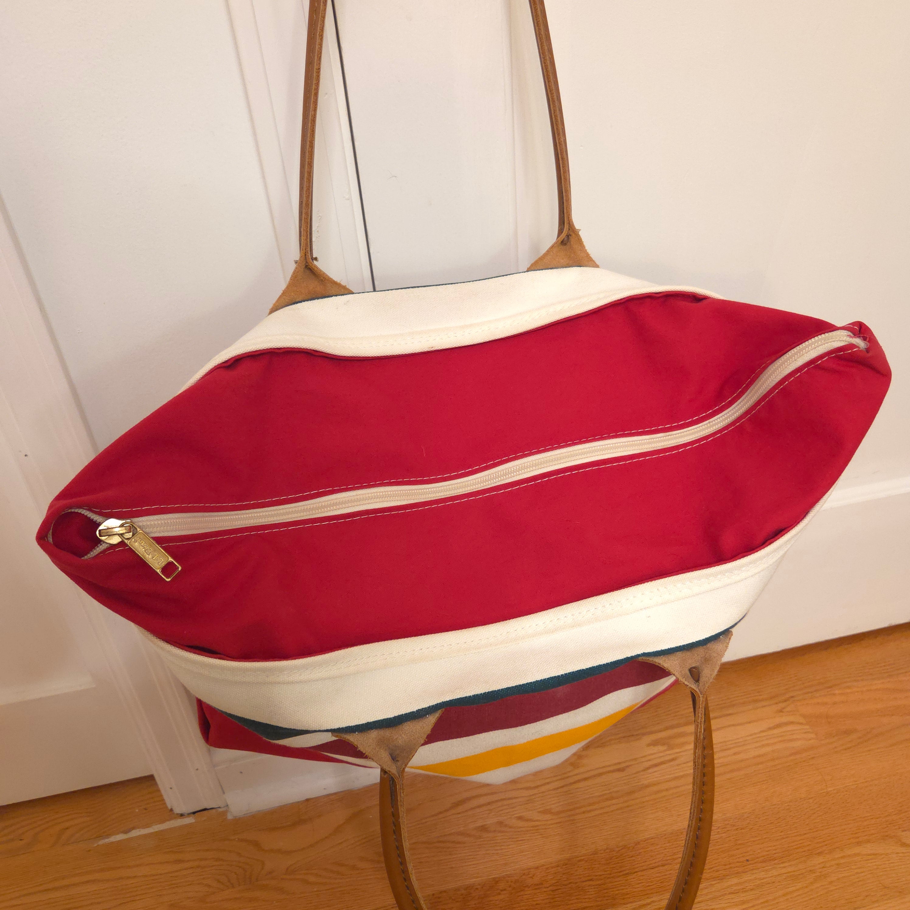 RARE Vintage LL Bean Boat & Tote - Glacier National Park Pattern - Leather Handles
