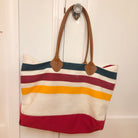Made in the USA, this tote showcases premium canvas construction paired with rich leather handles appended to the canvas with hand stitching and rivets for reenforcement, a luxurious yet practical finish. The Glacier National Park pattern adds a bold, nostalgic aesthetic, perfect for outdoor adventures or everyday use. Its spacious interior and reinforced seams ensure it can handle heavy loads while maintaining its iconic shape. It also features an internal key fob, LL Bean signed zipper, and a zip top to keep contents contained and protected. A perfect companion for your daily errands, a day on the boat, a day at the beach, or as an easy carry on for air travel.
