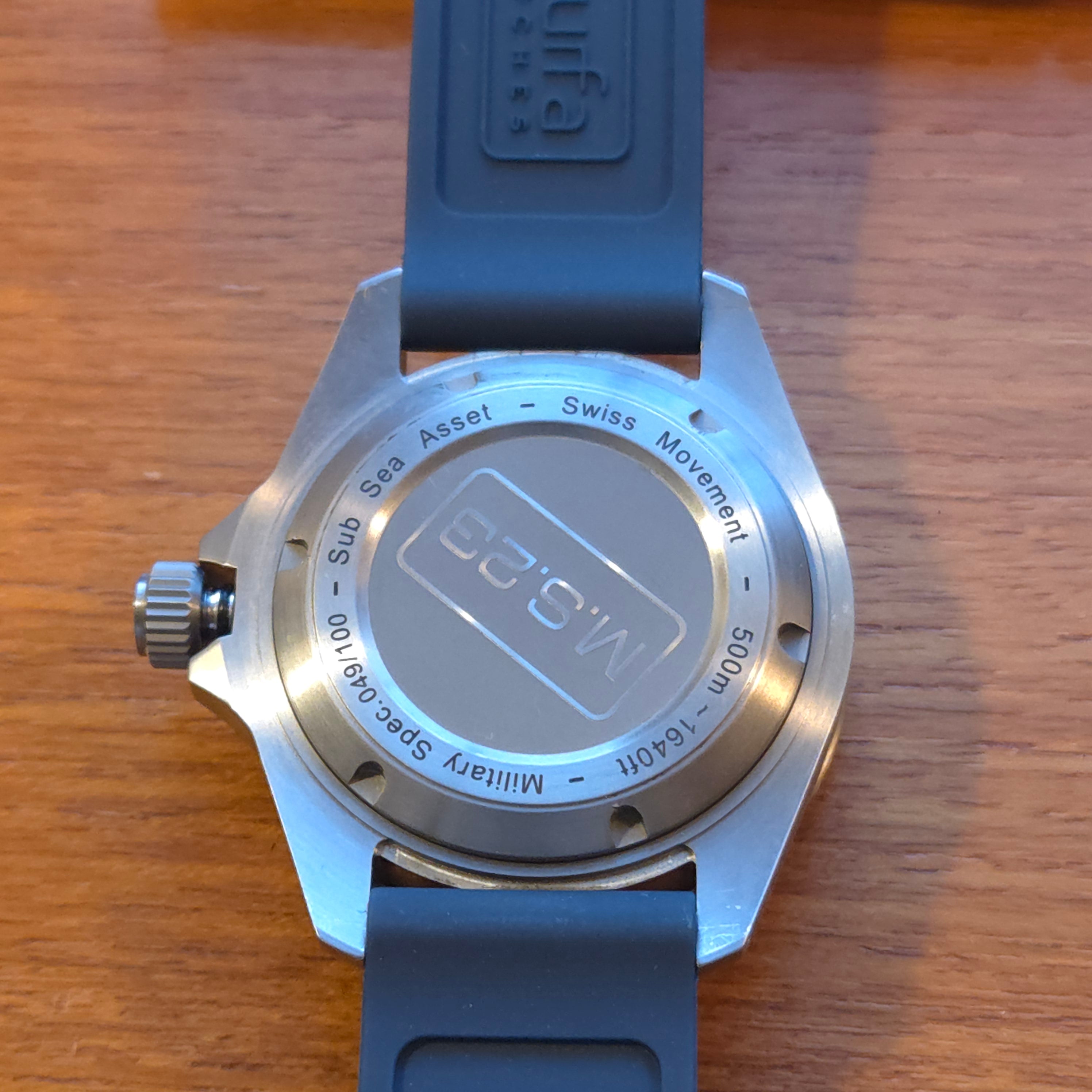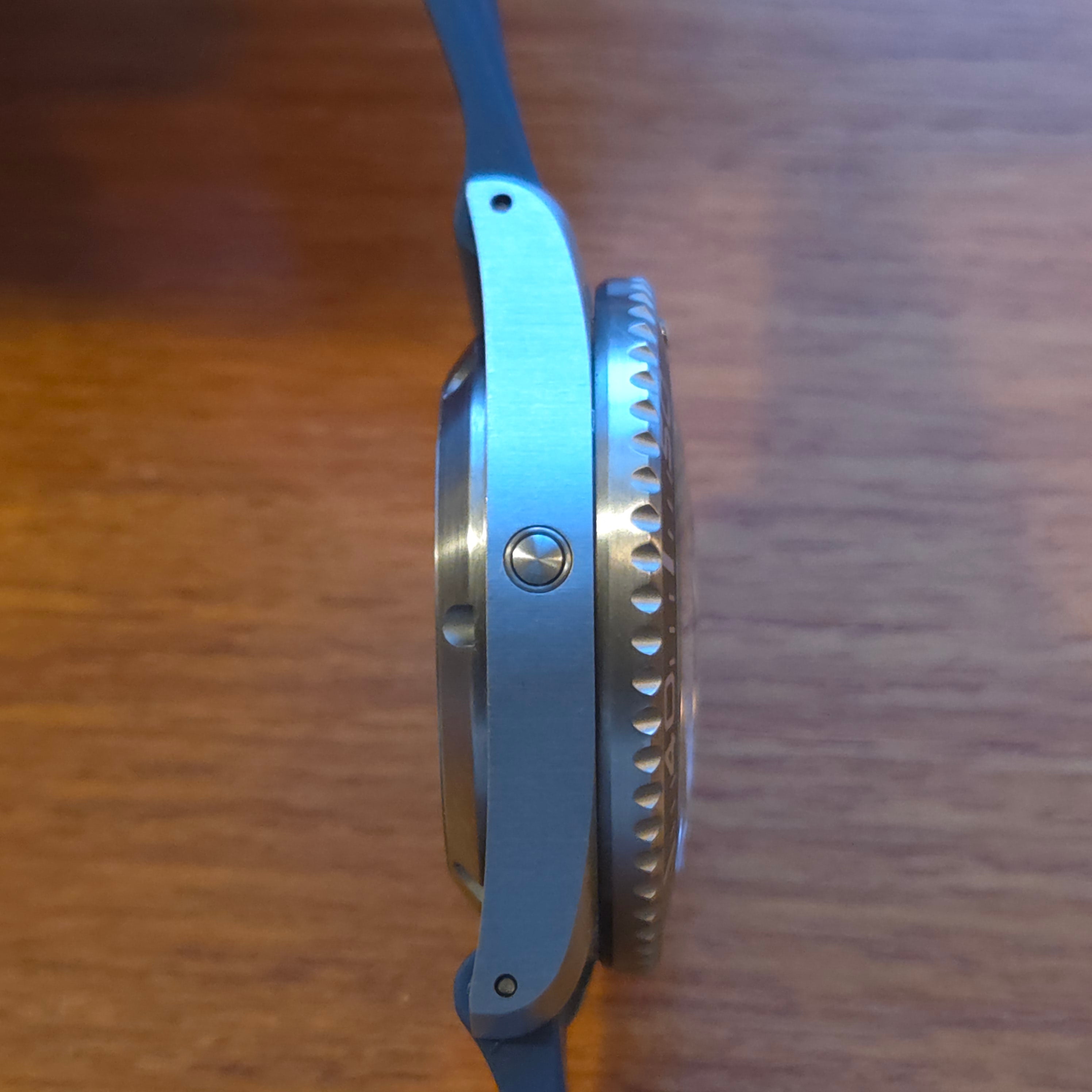 - Strap: Cobalt blue rubber strap with a titanium buckle, Scurfa Diver One titanium bracelet with extra links, additional set of shoulderless spring bars