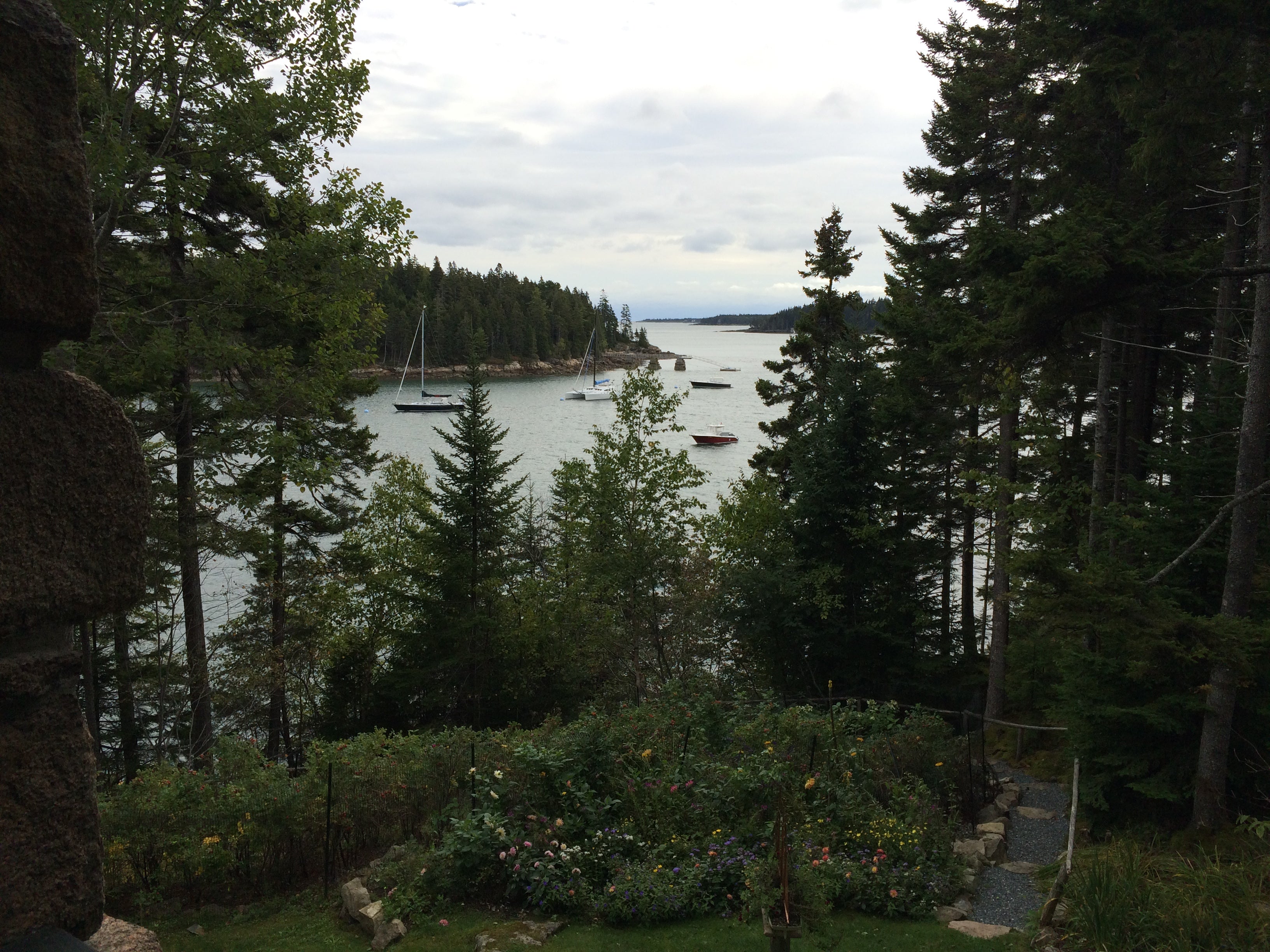 The view from Inchape's porch out to the mouth of Northeast Harbor and Bear Island in the distance.